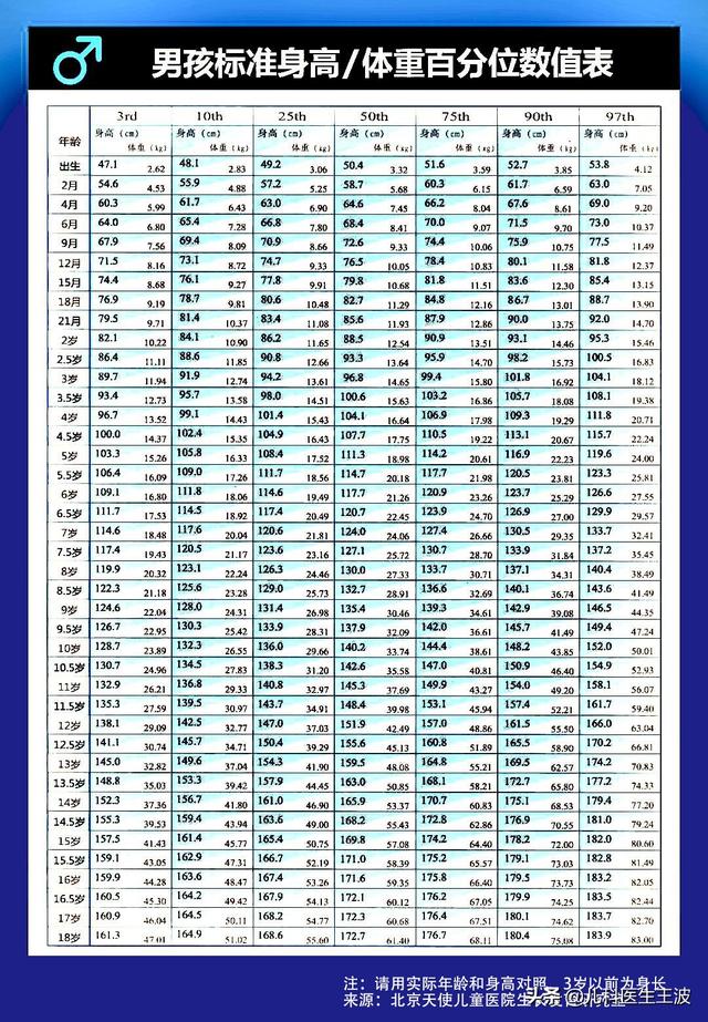 王波主任建议:当儿童身高低于中位数身高(即表中的50th)两个标准时就考虑有矮小症的可能,要及时去医院做相关检查,明确原因,避免影响孩子终身高。