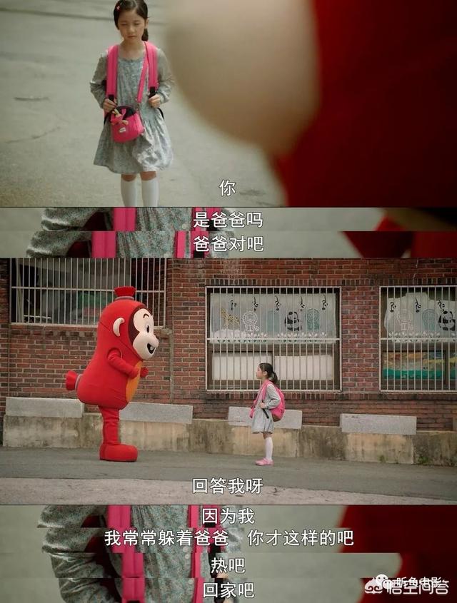 影片最后,经过很多人的努力,素媛变得开朗起来,她猜那个总跟着她的腊肠布偶可能是爸爸,她堵住他,问他是不是爸爸。